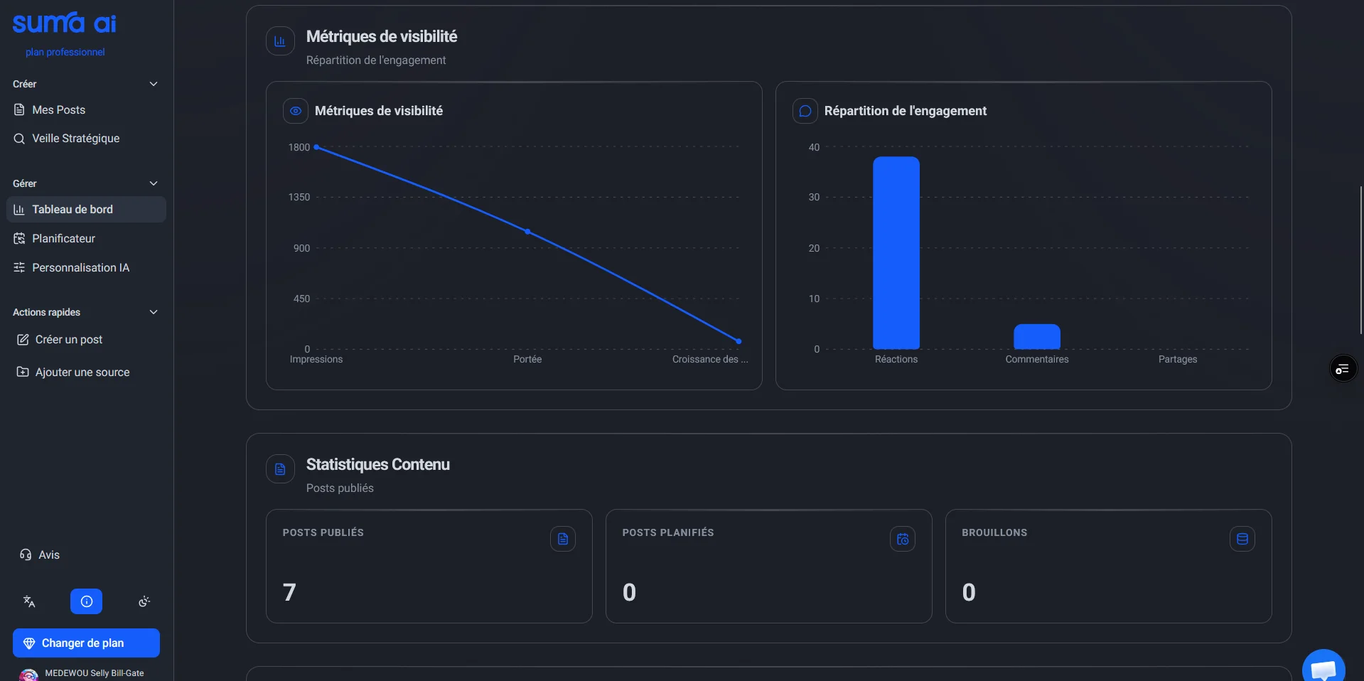 Identifiez immédiatement vos contenus les plus performants. Analysez impressions et taux d'engagement pour reproduire ce qui fonctionne.