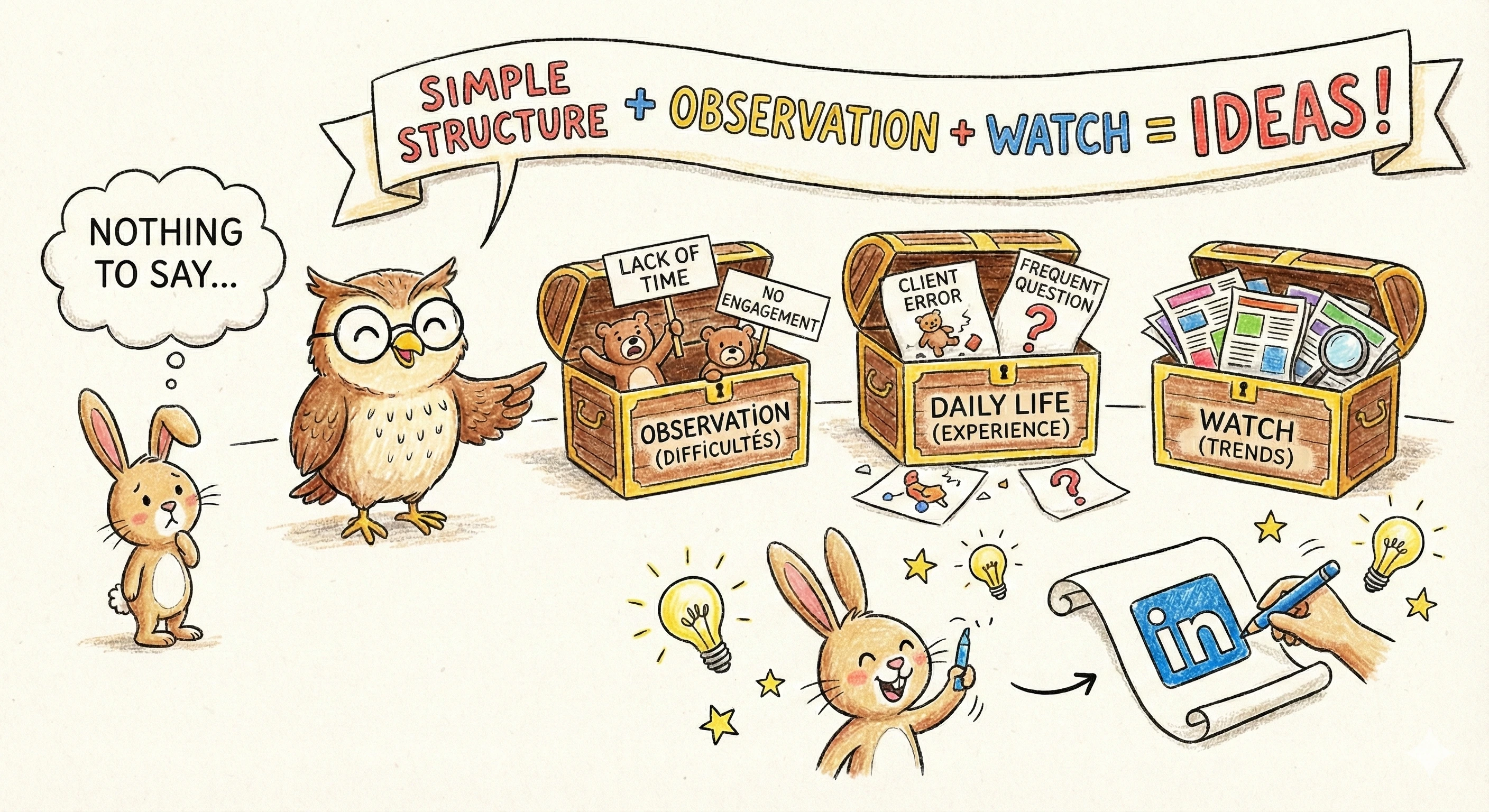 Manquer d'inspiration sur LinkedIn est un problème courant. Découvrez une méthode claire pour trouver des idées de posts pertinentes, même lorsque vous pensez n'avoir rien à dire.