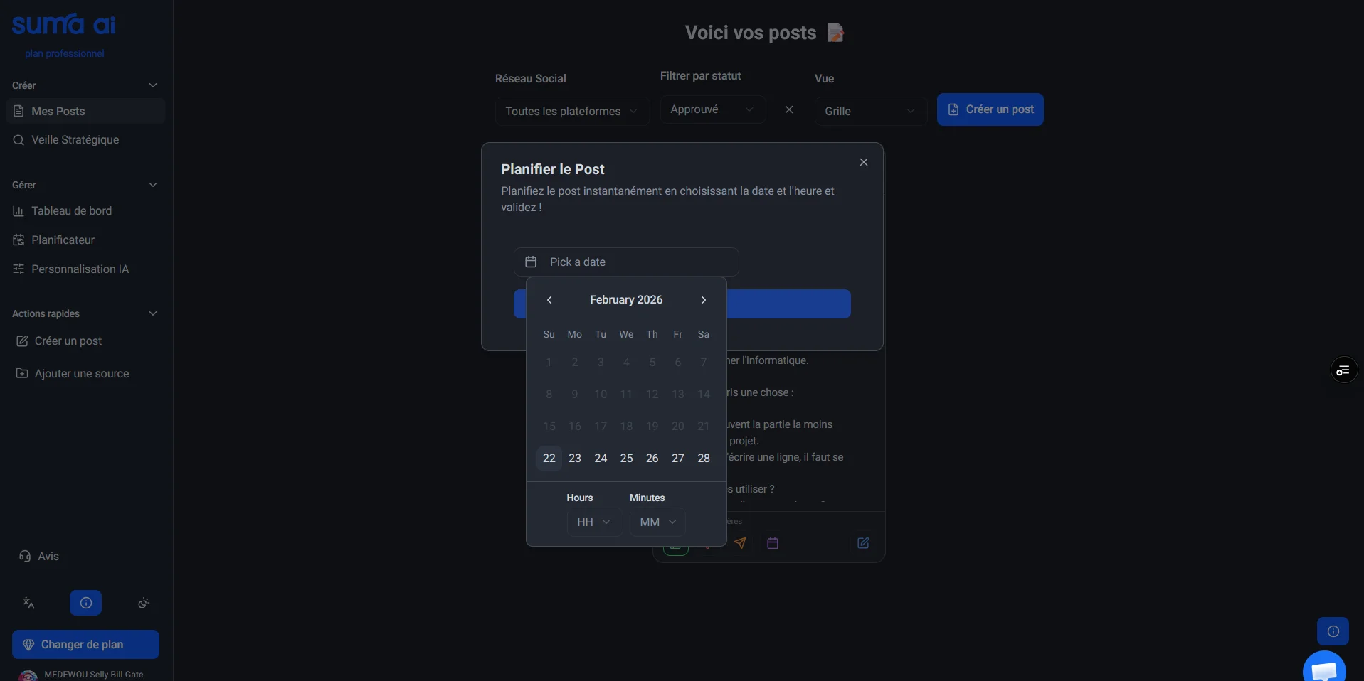 Planifiez votre calendrier éditorial, choisissez les créneaux idéaux et laissez Suma Ai gérer la publication.